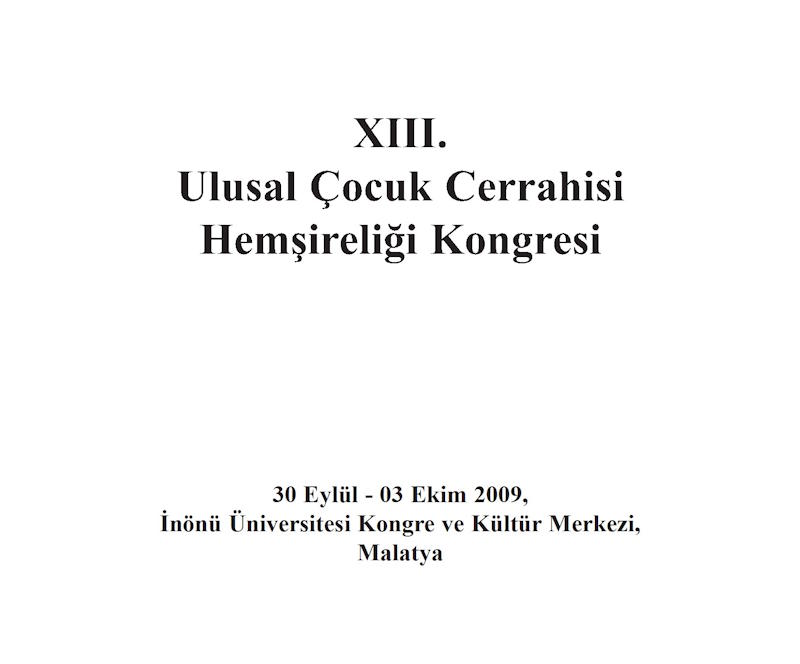 30 Eylül-3 Ekim 2009 tarihlerinde İnönü Üniversitesi Kongre ve Kültür Merkezi, Malatya‘da düzenlenen 13. Ulusal Çocuk Cerrahisi Hemşireliği Kongresi bildiri kitabını aşağıda görebilirsiniz.
